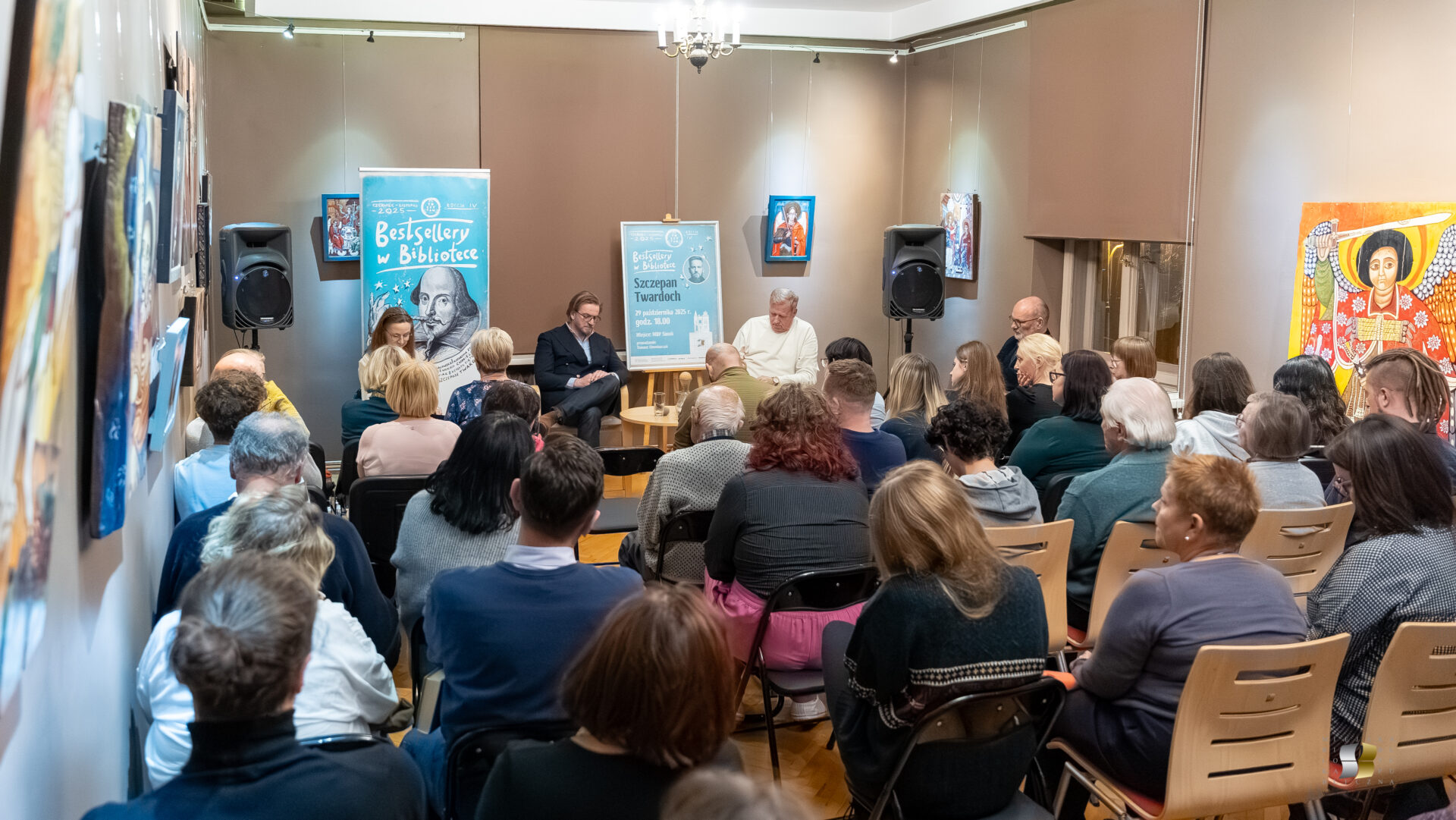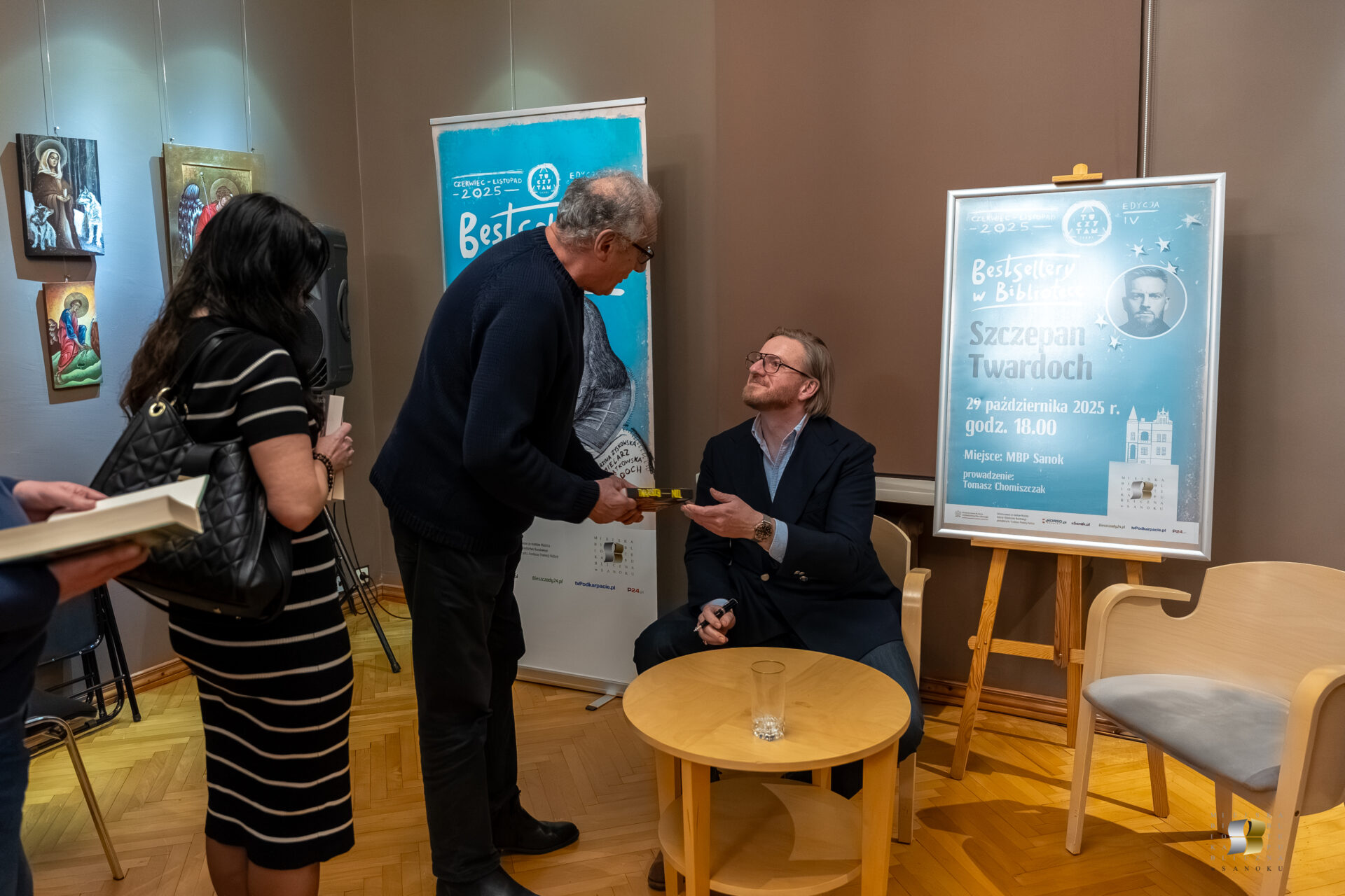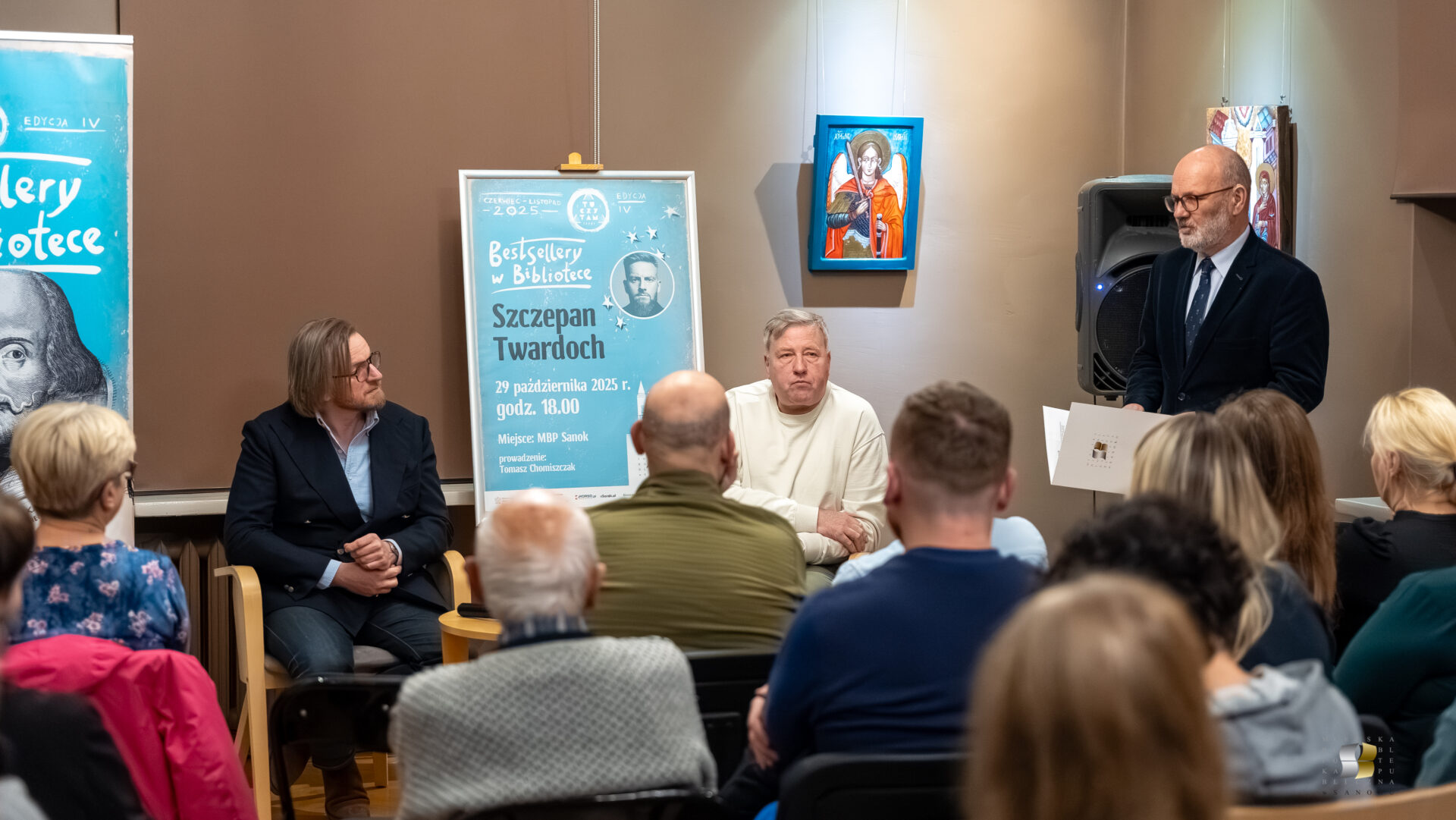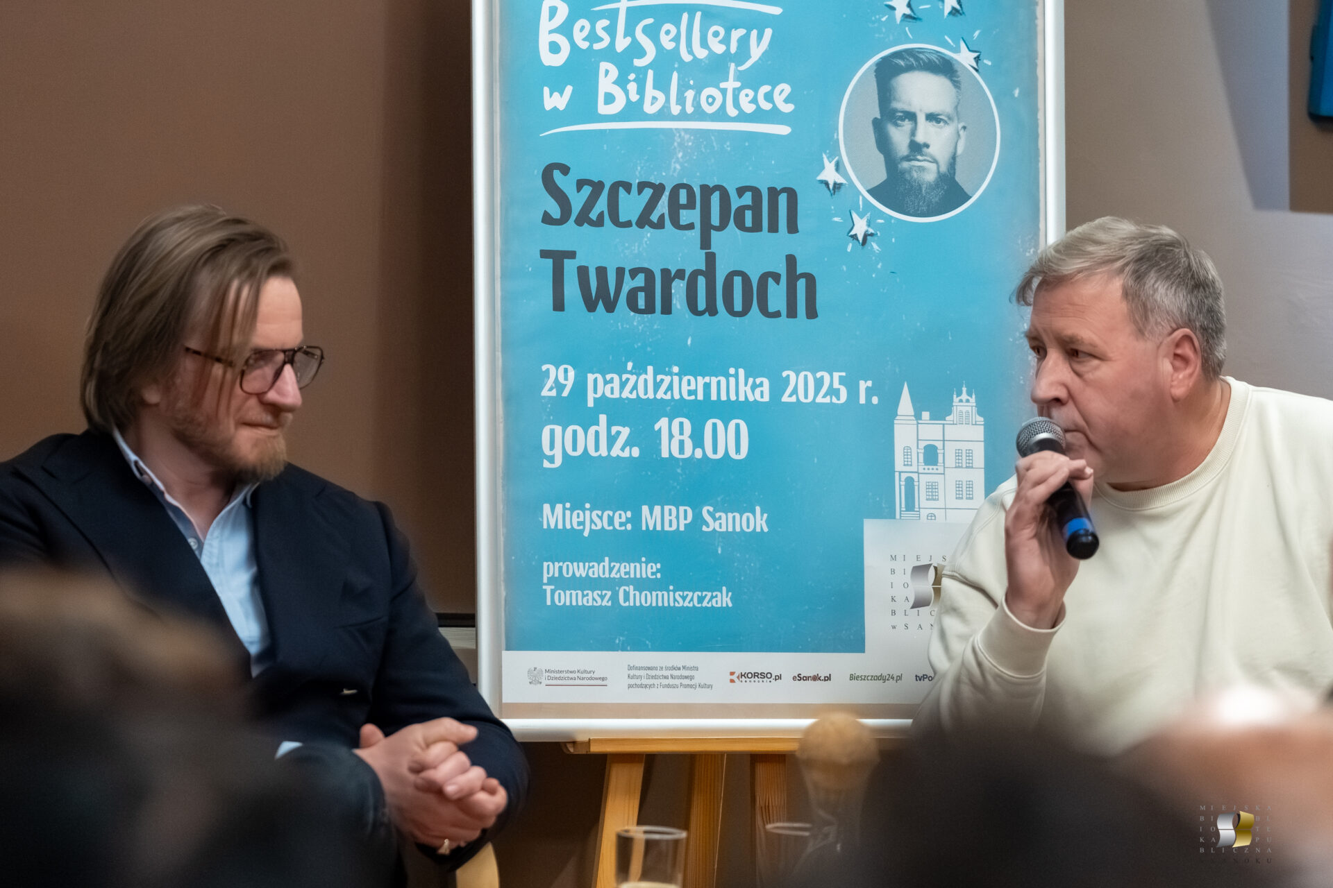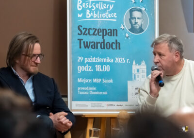 Spotkanie ze Szczepanem Twardochem zakończyło realizację projektu „Sanok – tu czytam. Bestsellery w Bibliotece” dofinansowanego ze środków Ministerstwa Kultury i Dziedzictwa Narodowego, w ramach programu Promocja Czytelnictwa 2025 (Fundusz Promocji Kultury}.